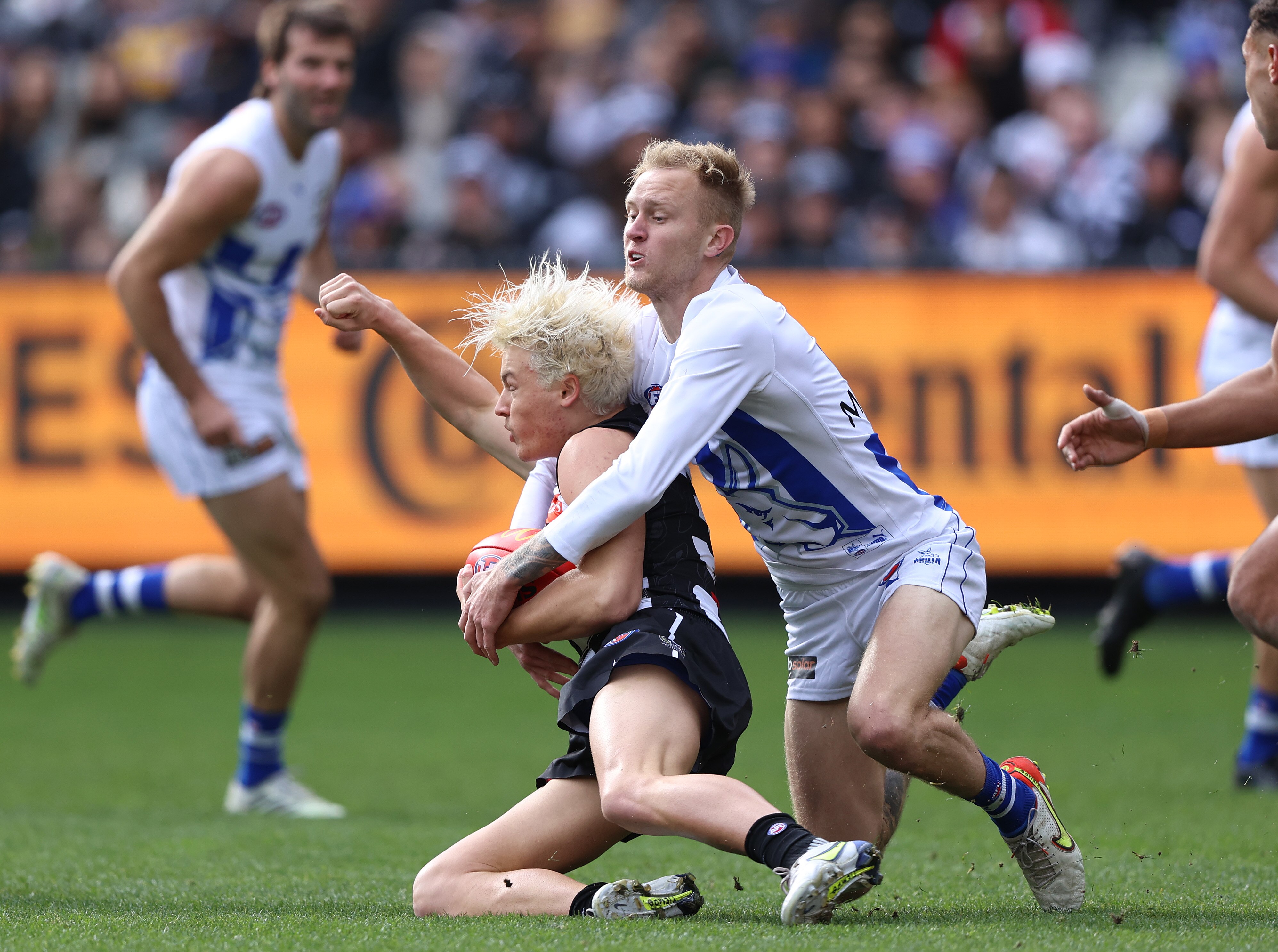 - Collingwood’s Jack Ginnivan has been at the centre of controversy over what should constitute a high tackle free kick